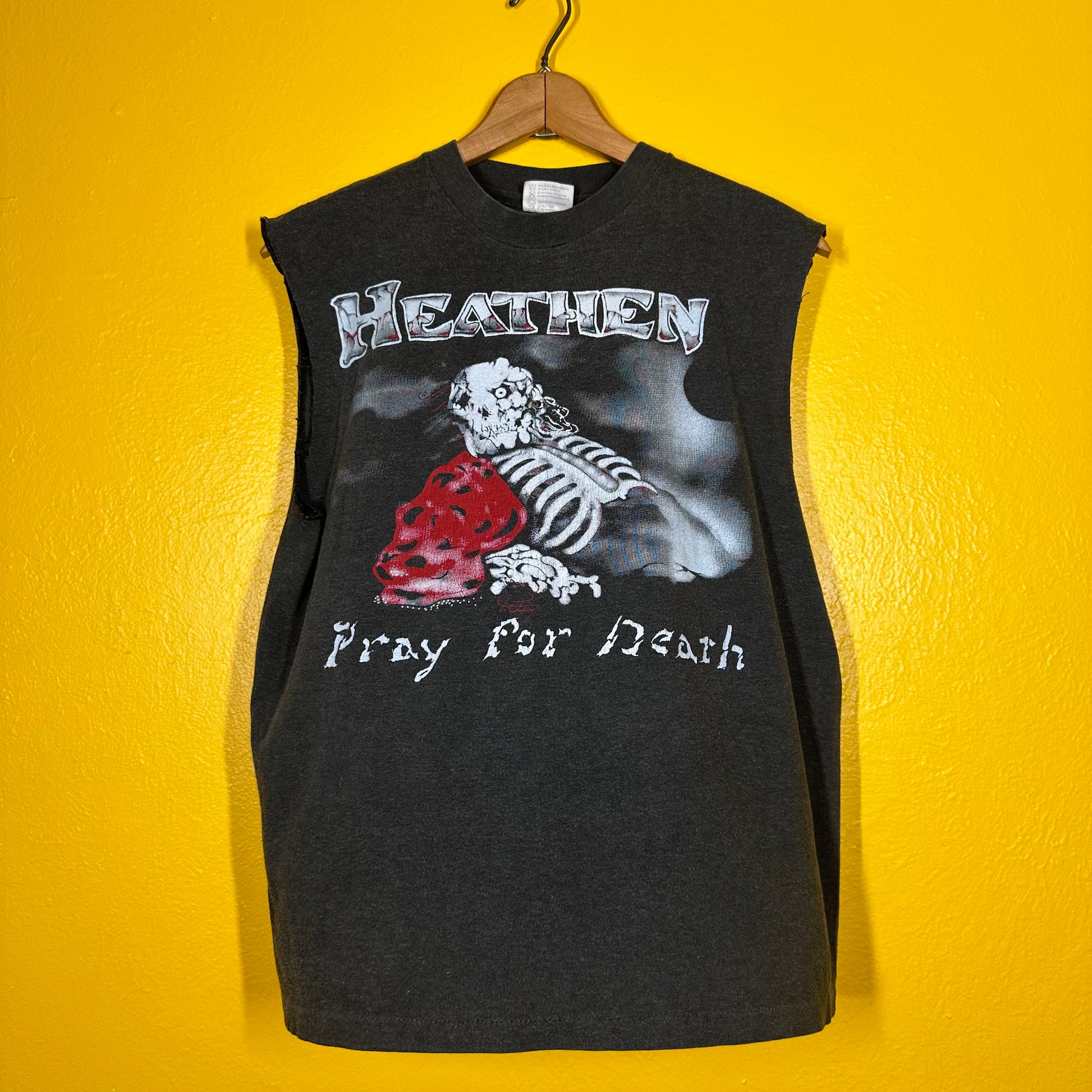 Vintage Heathen 1980s Pray For Death Cut Off Single Stitch Band Tee Sz M